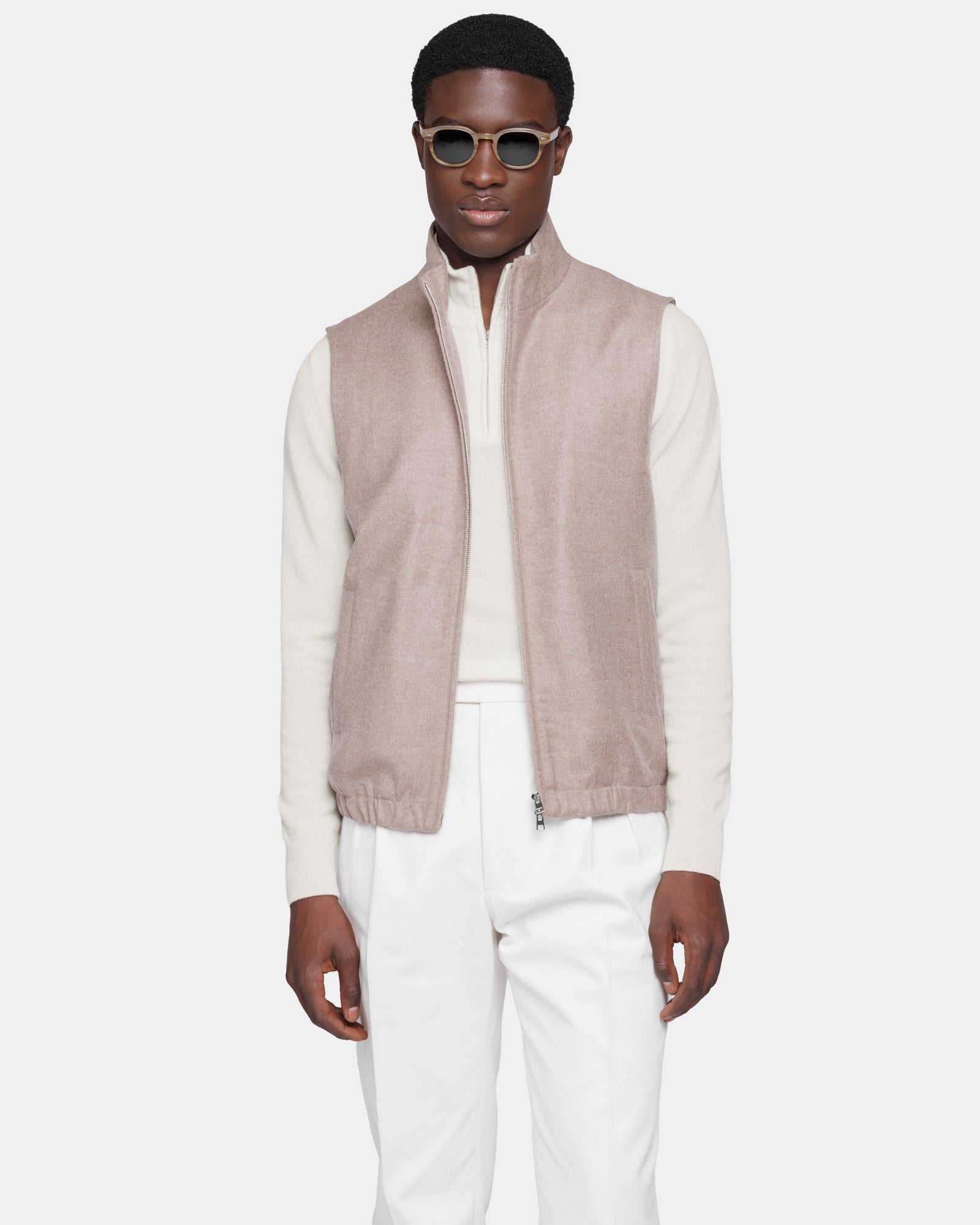 Sand Water-Repellent Wool-Cashmere Zip Vest | Filatori