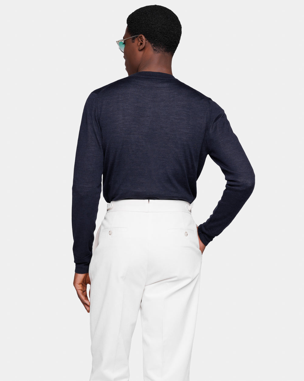 The luxurious blend of Extrafine Merino Wool and Silk from Filatori gives the knit a refined appearance, where the precious mix highlights the silk’s natural brilliance. This natural knit offers an incredibly soft touch against the skin, transforming a simple design into a luxurious garment.