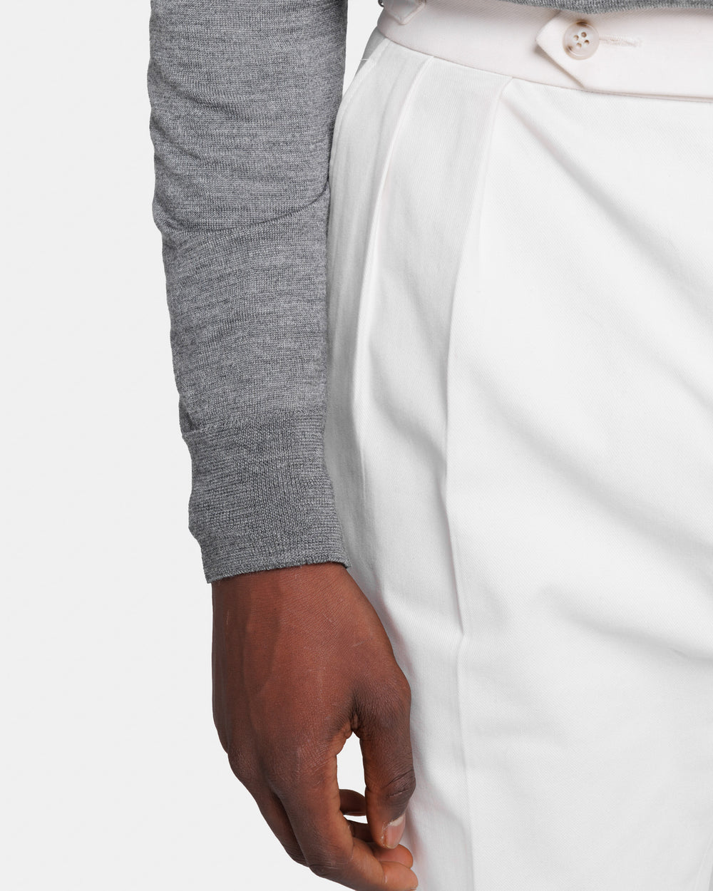 The luxurious blend of Extrafine Merino Wool and Silk from Filatori gives the knit a refined appearance, where the precious mix highlights the silk’s natural brilliance. This natural knit offers an incredibly soft touch against the skin, transforming a simple design into a luxurious garment.
