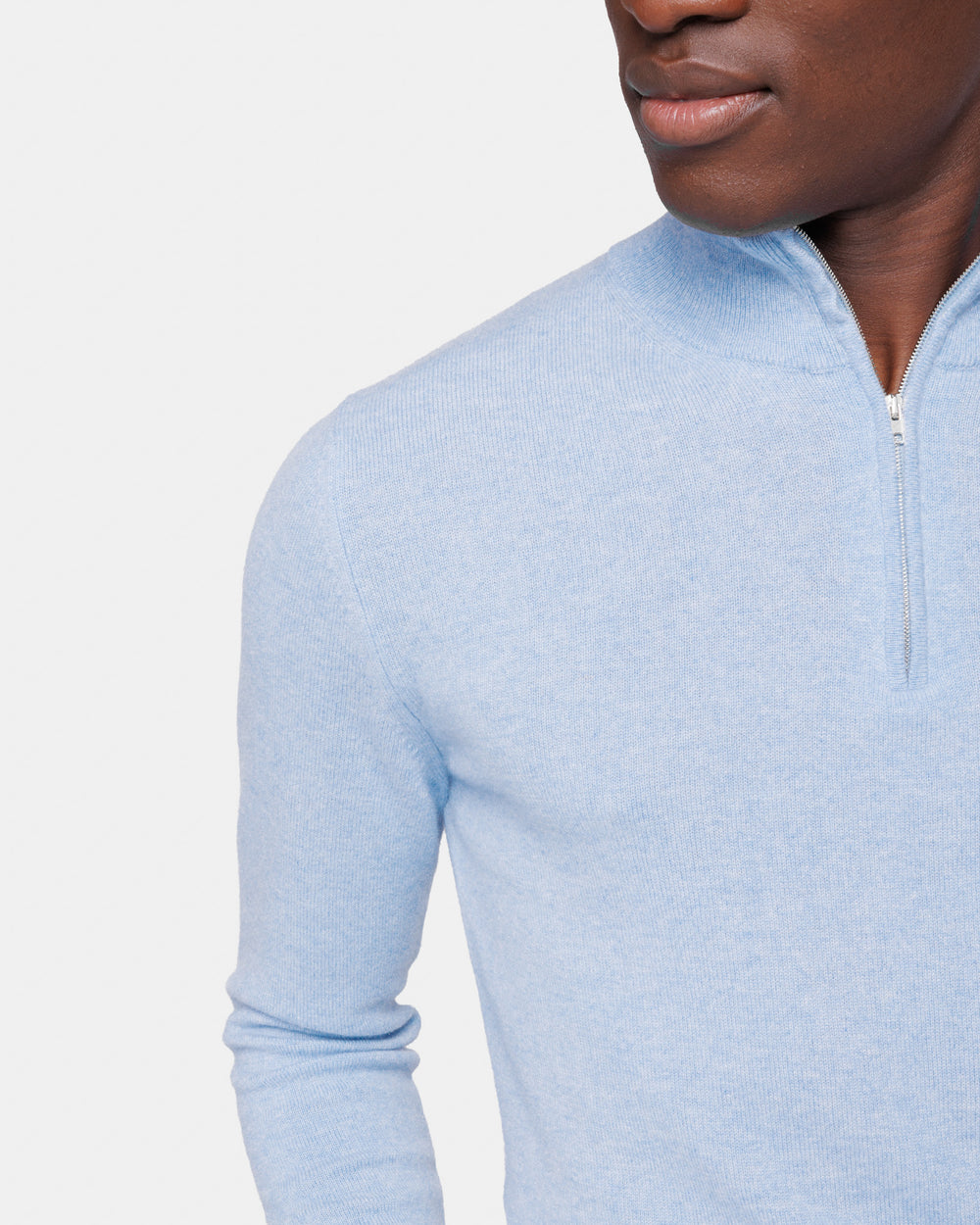 Sky Blue Half Zip Knitwear in 100% Pure Cashmere Crown Reserve | Filatori