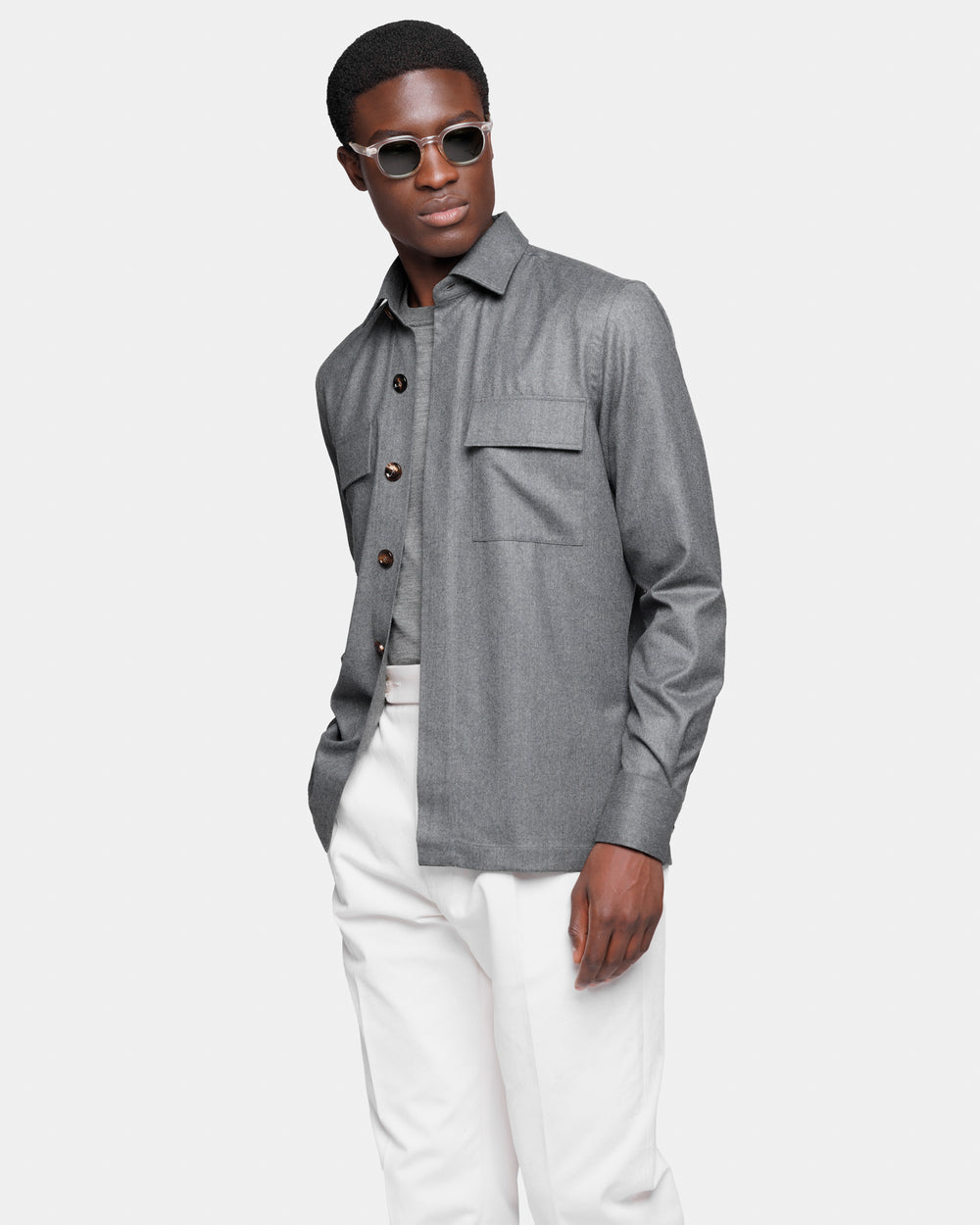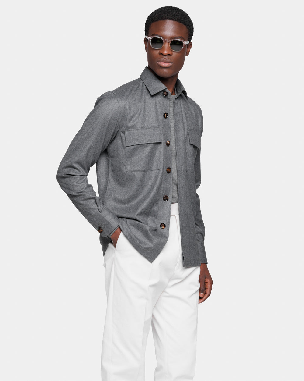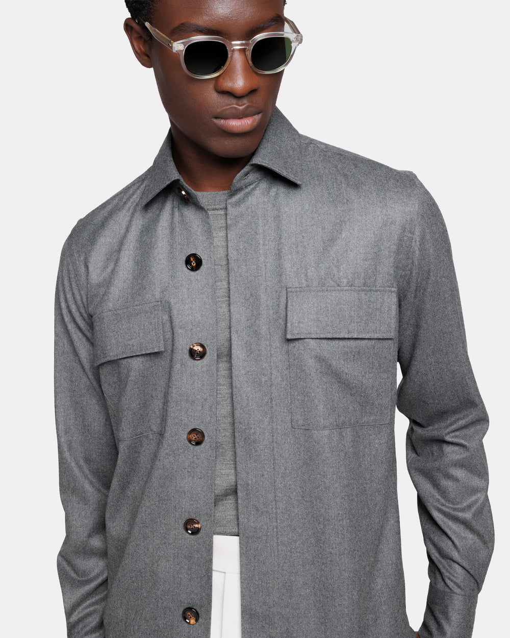 Overshirt in Grey Saxon Merino Wool Super 150's | Filatori