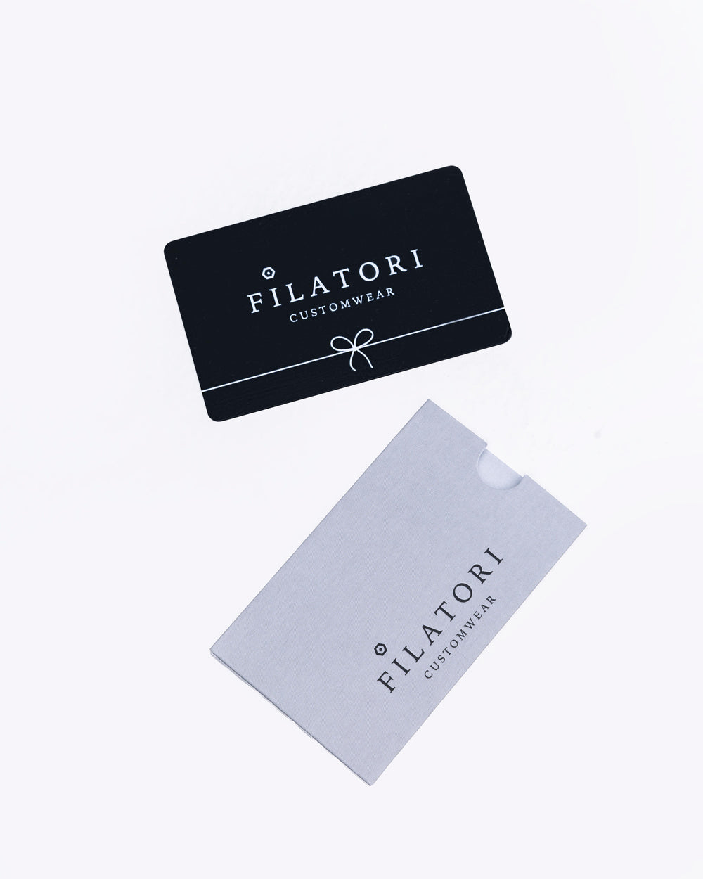 With the Filatori Gift Card, you can give the gift of one of our exclusive and luxurious collection pieces, personally selected and made to measure. The gift card also includes a complimentary digital consultation with one of our expert Style Experts to ensure a perfect fit and a personalized experience.